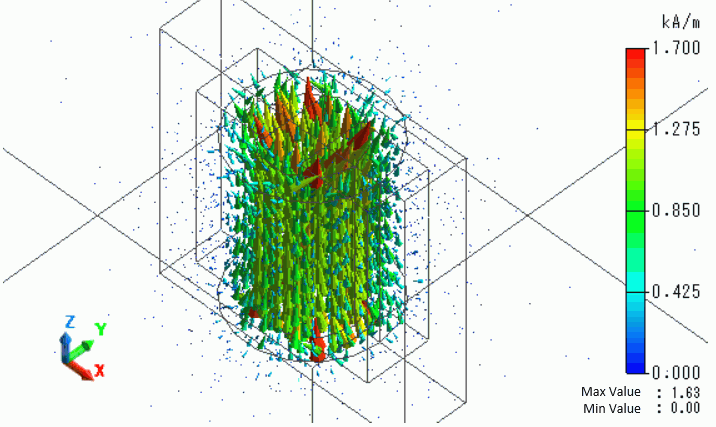 The core loss, the vectors of the magnetic field and the magnetic flux density are solved.