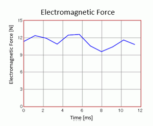 The diagram below shows time-propulsion characteristics. It is output to [mover/ X component] of [Electromagnetic force [N]] in the result table.