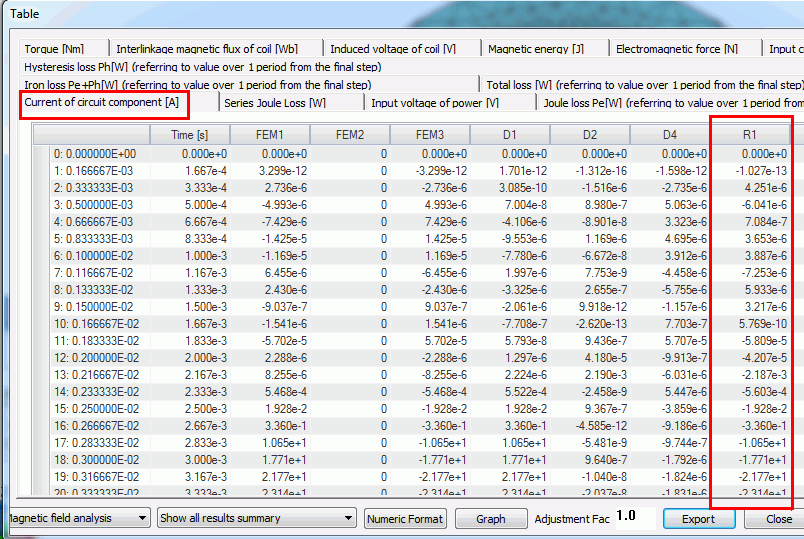 In the result table, the generated current is output as the circuit current of the resistor, which is for detecting the generated power.