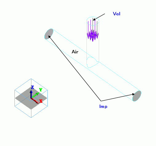 The acoustic impedance boundary is set on the sections of the horizontal pipe.