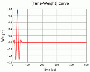 The driving frequency is set to 40 kHz as explained in the analysis condition. Using a spreadsheet, the sine wave of 40 kHz is created, and part of it is used for the [time - weight] graph.