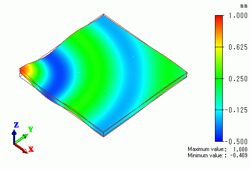 Z component of displacement on the edge area along the X axis is shown in the Fig. 2. The overlapping diagram of phase 0 and absolute is shown in Fig. 3(a).