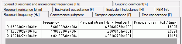 The table below shows the resonant frequencies.