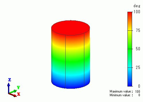 The cylinder's top and bottom faces are set with different temperature by the "temperature" boundary