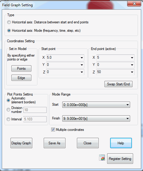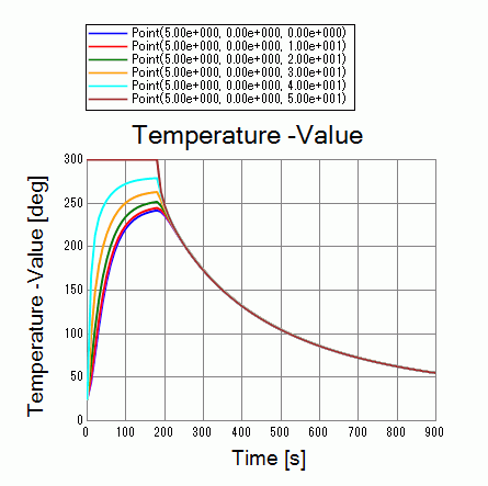 The temperatures of 5 points in the model will be drawn through the following chart setting. The 5 points for the chart are set at regular intervals form the bottom to the top.
