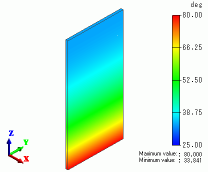Aluminum plate, defined by a rectangular solid body, is placed vertically. The bottom face is set with the Temperature boundary condition.