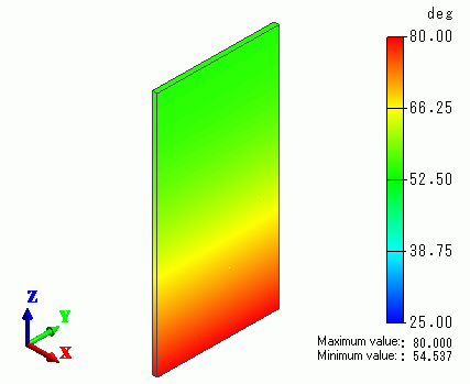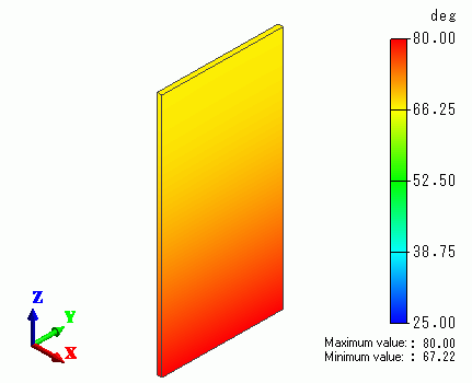 The model is the same as the example 5: The heat radiation from an aluminum plate with its bottom face fixed at a specified temperature is analyzed. This is a transient analysis.