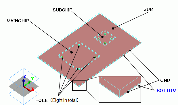 The finer mesh size is set to via holes (HOLE), where the heat flux is expected to change drastically.