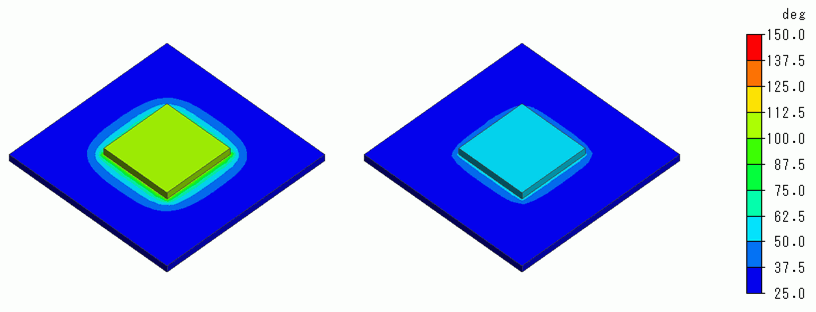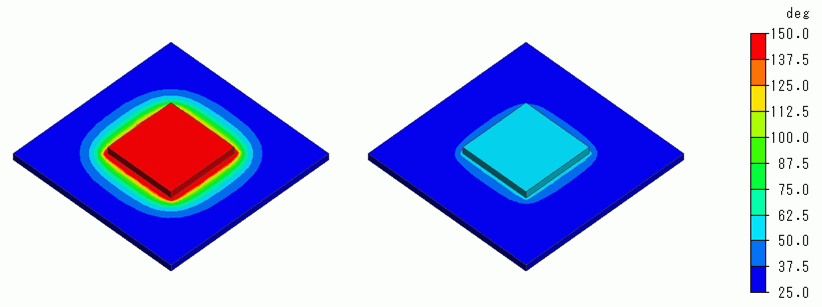The model is the same as Example 8: A heat source is placed on a substrate, and there is a forced air flow for cooling in parallel to the substrate.