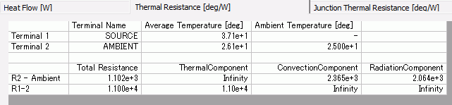 For the second model, the heat flow rate and thermal resistance are solved in a domain using the [Measuring Terminal] boundary condition.
