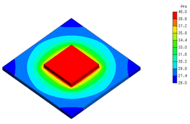 The temperature distributions of the substrate and IC are shown below.