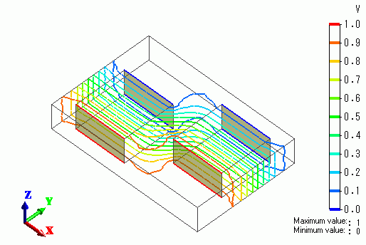 • The unit capacitors, consisting of alumina blocks and electrodes, are periodically placed in the analysis space.
