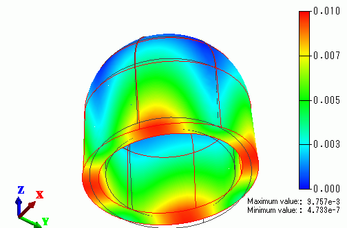 The displacement diagram of Mode[0] is shown below. The contour diagram shows the displacement.