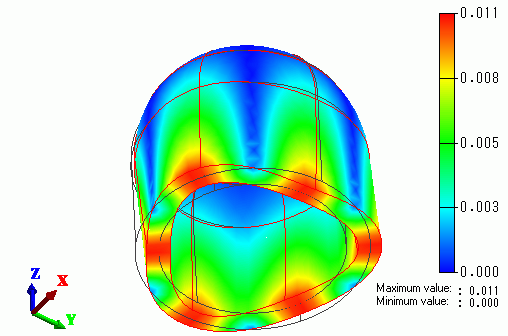 The displacement diagram of Mode[2] is shown below. The contour diagram shows the displacement.