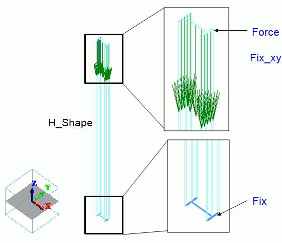 An H-shaped sheet body is created on XY plane. It is extruded to form an H-shape pillar.