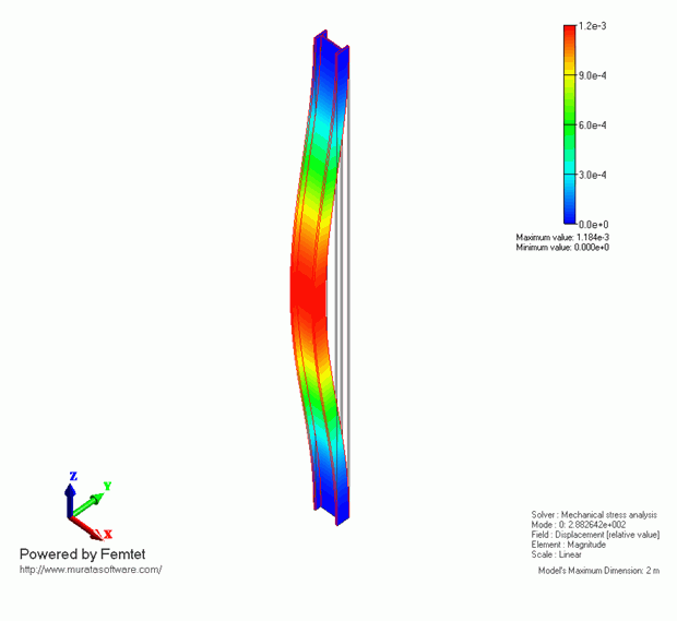 <<Buckling Analysis>> Buckling load factor Mode[ 0] = 2.88264161e+002