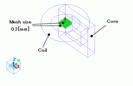 As the magnetic field concentrates in the gap of the magnetic core, small mesh size is applied (0.2mm).