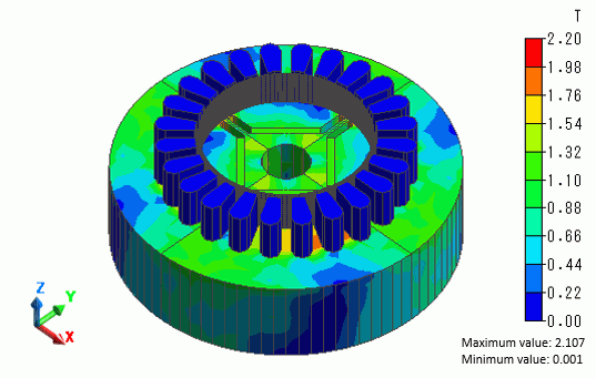 Temperature and torque characteristics of IPM motor (Interior Permanent Magnet Motor) are analyzed when the electricity is applied.