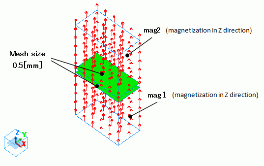 Mesh size is set at 0.5[mm] as the magnetic field changes drastically between the magnets.