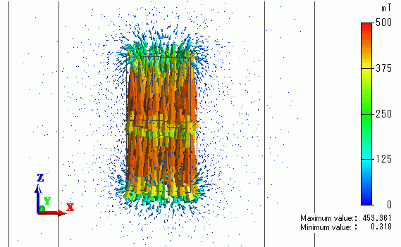 The vectors of the magnetic flux density are shown below.