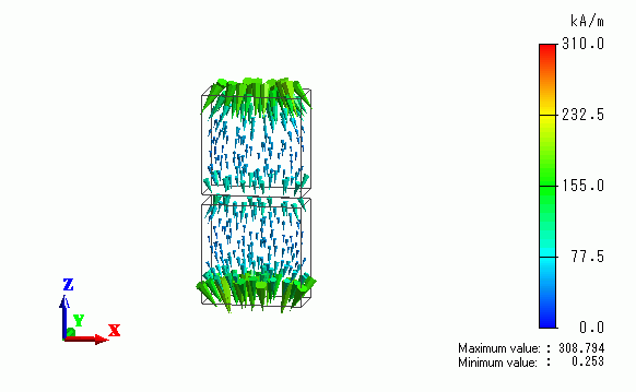 In the figure below, the magnetic field of the inside of magnets is shown and that in the air is hidden.