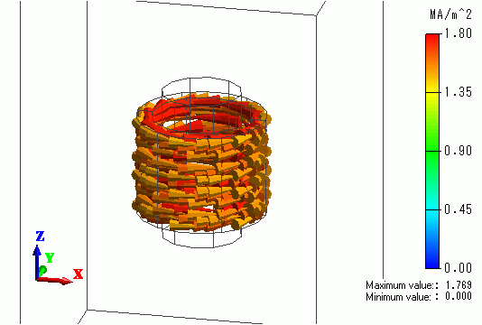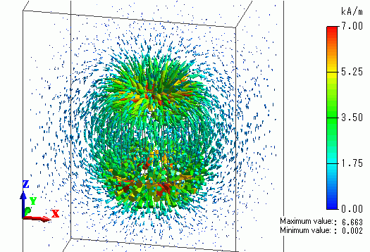 The vectors of the current density, the magnetic field and the magnetic flux density are solved.