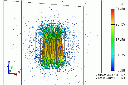 Waveform: Constant Current: 1[A] Turns: 100[Turns] Direction: Loop Coil/Magnetic Field Direction: Magnetic Field Vector: X=0, Y=0, Z=1 |