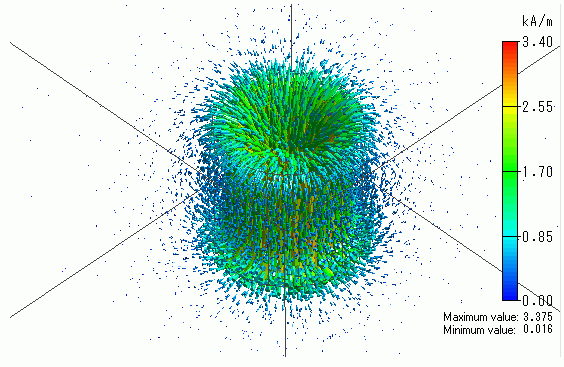 The vectors of the magnetic field and the magnetic flux density are also solved.