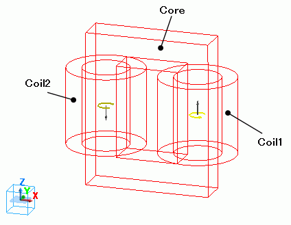 Bodies of two loop coils (Coil1, Coil2) and magnetic core are defined.