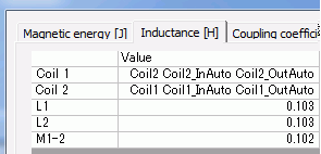 The inductances of the loop coils are output as follows.