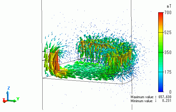 The vectors of the magnetic flux density are shown below.