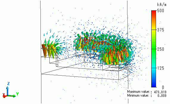 The vectors of the magnetic field and the magnetic flux density are solved.