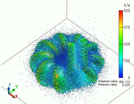 The vectors of the magnetic flux density are shown below.