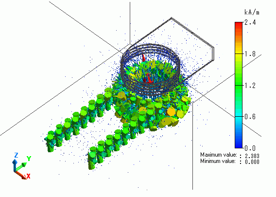 In the magnetic field harmonic analysis, inflow/outflow faces must be outside of the ambient air. (for the purpose of calculation with FEM)