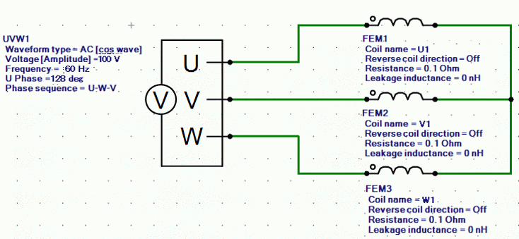 Waveform: External circuit coupling Coil Name on the Circuit: U1 Turns: 35[Turns] Direction: - Y Direction |