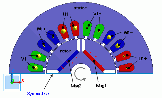 The model is a permanent magnet synchronous motor with magnets built in a rotor.