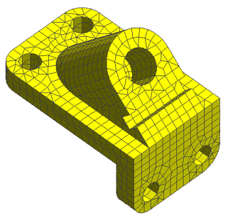 Hexahedral free mesh can create hexahedral elements on a specific shape. Tetrahedral elements are generally included. To connect the tetrahedral elements to hexahedral elements, pyramid and triangular prism elements are created and in a mix with other elements.