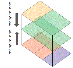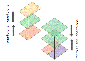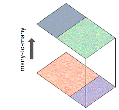 | Opposite faces have a many-to-many relationship. The bottom face and its opposite face are highlighted. |