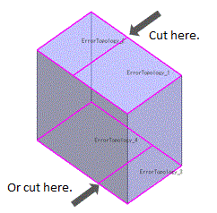 | The two sweep bodies each have a face and its opposite face with a many-to-one relationship. The opposite faces are shared. The faces and the shared opposite face are highlighted. |