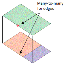 | The opposite edges on a side face have a many-to-many relationship. The side face and vertices on the opposite edges are highlighted. |