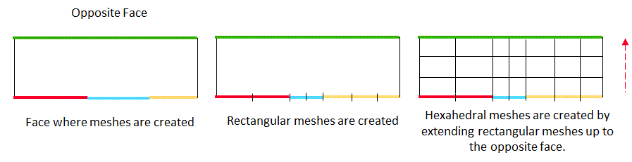 Sweep Mesh creates rectangular meshes on one face and extend them up to the opposite face, creating hexahedral meshes.