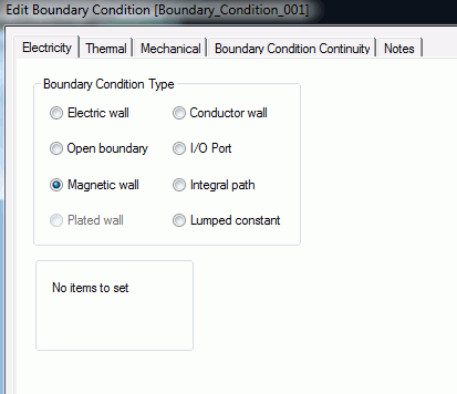 It is common to have electric wall or conductor wall as outer boundary condition in electromagnetic analysis. Heat transfer:convection boundary and ambient radiation are also common when a solid in the air is analyzed.