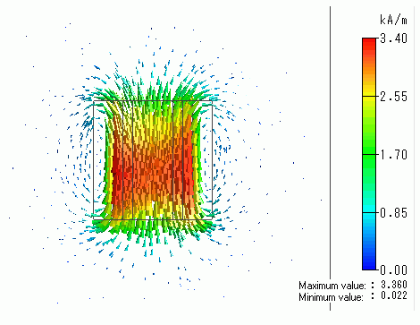 The vectors of the magnetic field and the magnetic flux density are also solved.