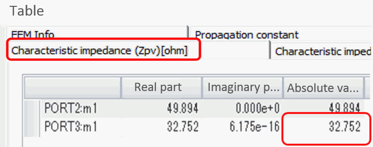 PORT3 in Fig. 4 is the port of the discontinuous part. It shows that PORT3's characteristic impedance is about 32 [Ω].