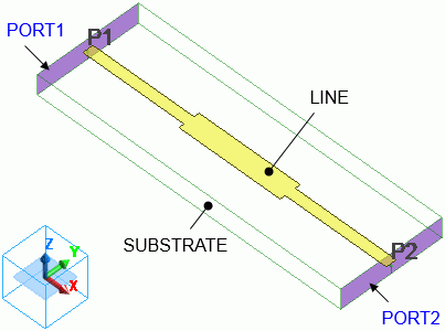 The electromagnetic waves entered from port 1 (PORT1) are reflected in the first discontinuous part at the distance of 10 mm from the port 1.