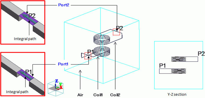 The ports of Coil1 and Coil2 are Port1 and Port2, respectively, and the integral paths are set.
