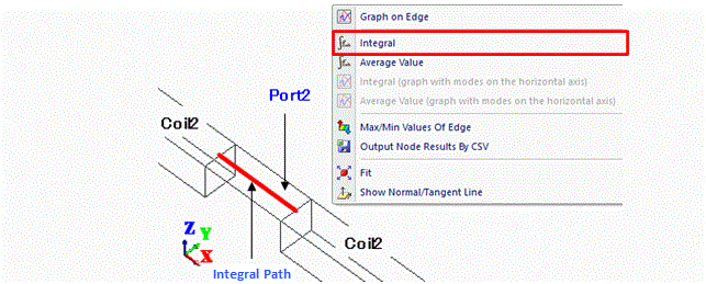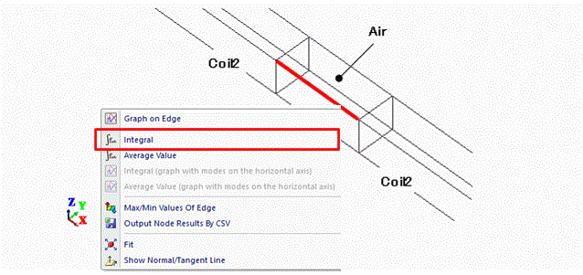 As in Fig. 7, select an edge of the air body parallel to the electric field and execute the integral command.