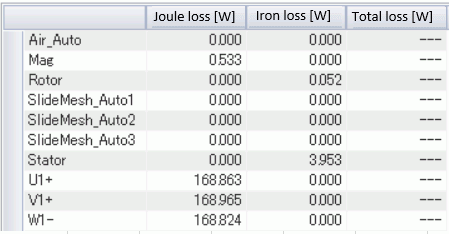 The losses are listed in the table of [Loss [W] (referring to value over 1 period from the final step)].