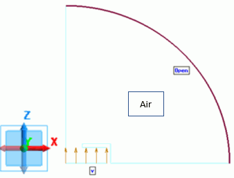 It is axisymmetric, so just right half of the section is created with a sheet body and defined as air. The open boundary is set on the perimeter of the quadrant circle representing the surface of the cavity.