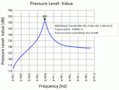 The gradation contour of the sound pressure level at the driving frequency of 8.8 [kHz] is shown below.